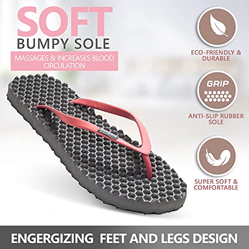 Paraurti ACUPRESSING SANDALI DI MASSAGGIO PER DONNE - Riflessologia infradito con un design confortevole di modello e suola con presa sodo (41-42, grigio e rosa)
