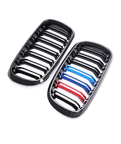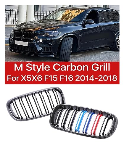 Paraurti inferiore anteriore inferiore Griglia del rene Doppia stecca in fibra di carbonio Colore M Griglie interne. Compatibile for BMW. Compatibile for X5 X6 F15 F16 2014-2018 X5M X6M (Color: Dual