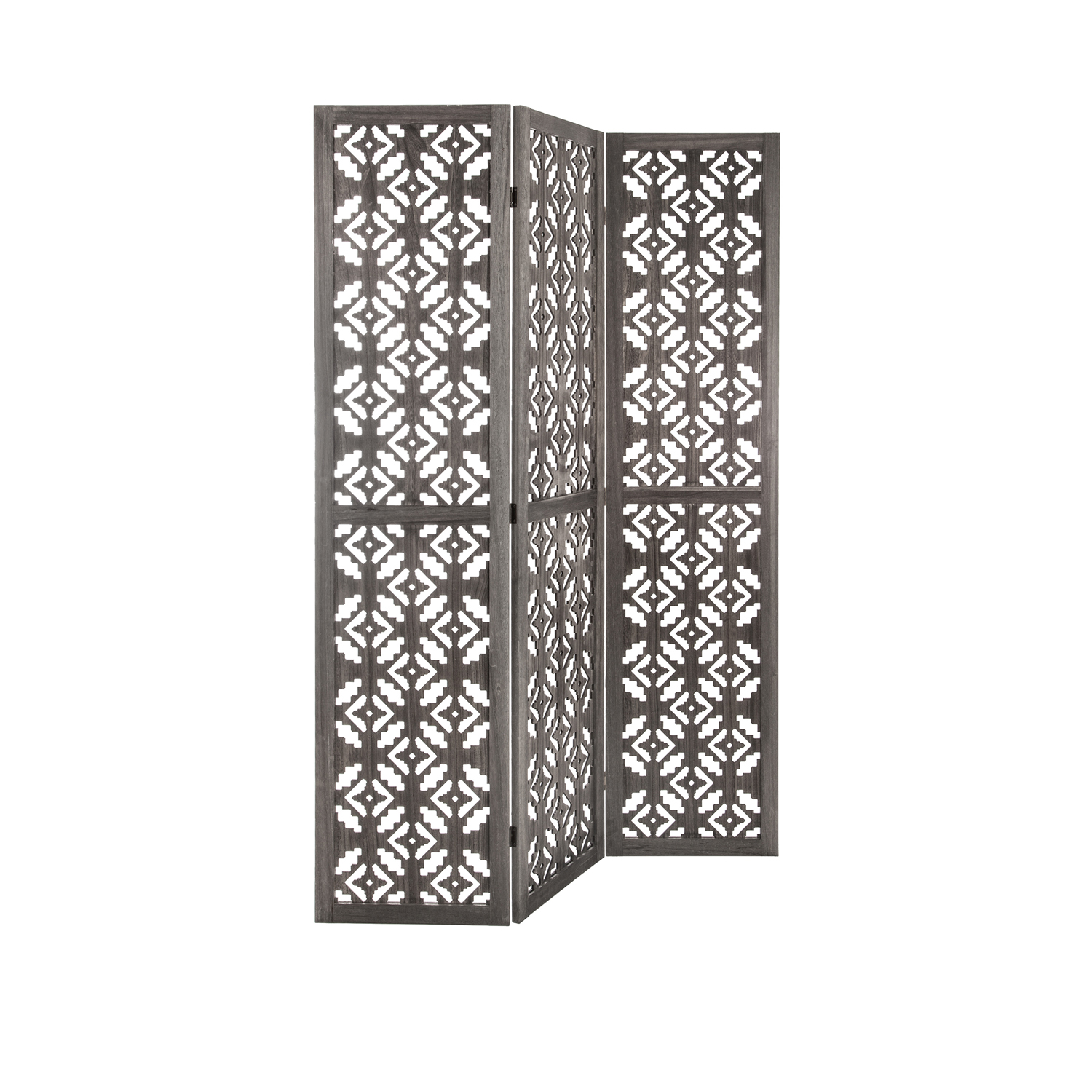Un divisorio decorativo con struttura pieghevole a 3 pannelli per delimitare con eleganza gli spazi abitativi del tuo appartamento. Il suo design di ispirazione etnica decora la stanza con un tocco artistico ed essenziale, lasciando passare degli spiragli di luce. Potrai sfruttarlo in camera o in salotto per creare un separè discreto che unisca stile e funzionalità, fornendoti la privacy che cerchi. Dimensioni: 120,7x170,5x19 cm.