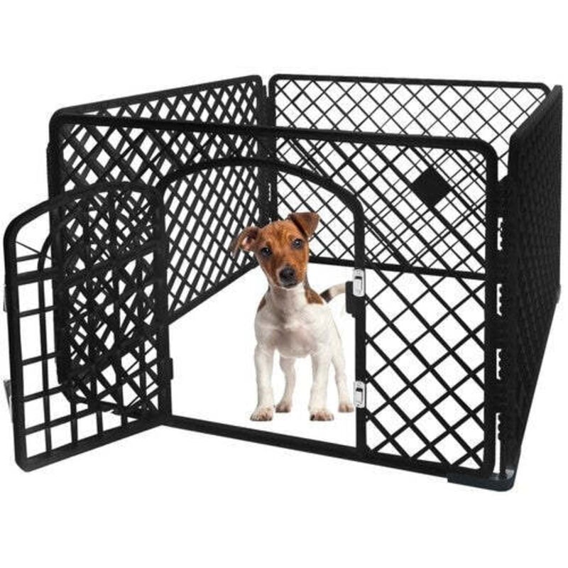 Questo parco giochi per animali domestici è composto da 4 pareti in plastica resistente. C'è un cancello in una parete. Il parco giochi è adatto sia ai cuccioli che ai cani anziani, ma può essere utilizzato anche per altri animali domestici. - realizzato in un materiale durevole - impedisce al tuo animale domestico di scappare - facile da montare Specifiche: Colore: nero Materiale: ABS Dimensioni: 90 x 90 x 60 cm Dimensioni della griglia: 5 x 5 cm Peso: 4,3kg