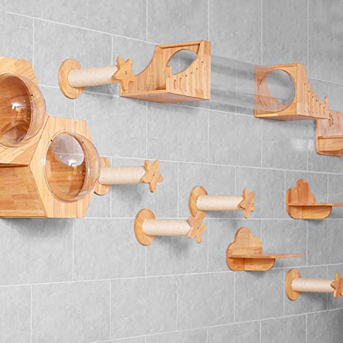 QJM Parete da Arrampicata per Gatti - Supporto per Gatti in Legno Impermeabile, Parete per Arrampicata in Vero Legno Giochi per Gatti Cuccia per Gatti da Parete - Accessori da Parete