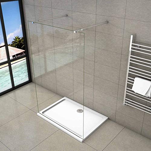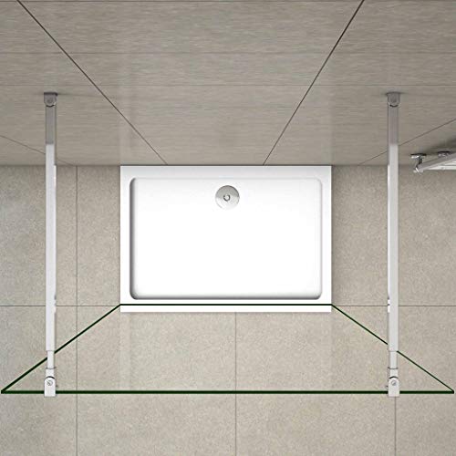 Parete Per Doccia Walk In Vetro 8mm Temperato Trasparente Anticalcare 100x200 cm con Doppia Barra Stabilizzatrice 73-120 cm Regolabile