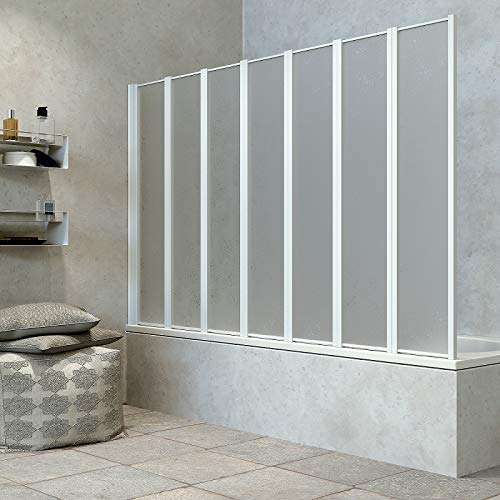 Parete sopravasca pieghevole in alluminio bianco e acrilico opaco 112, 134, 155cm altezza 140 cm CAROLA (134 cm)