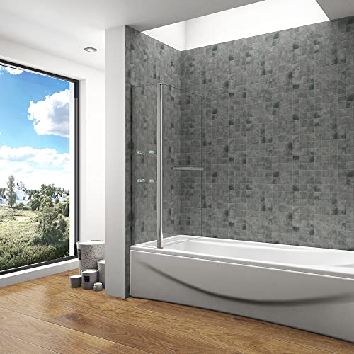 Parete Vasca da Bagno Doccia Apribile 100x140 cm con 2 Ripiani Vetro Temperato Trasparente 6 mm Maniglia Portasciugamani