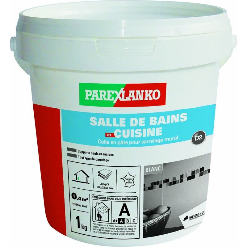 Colla per piastrelle in pasta bagno e cucina è una colla speciale per ambienti umidi progettata per la posa di gres allungato, gres porcellanato, pietra calcarea, terracotta, maiolica, pasta di vetro per piccoli e medi formati (33 x 33 cm max). Informazioni tecniche: Temperatura di utilizzo: da +5°C a +30°C. Tempo per piastrellare: 30 min. Tempo di regolazione: 15 min. Tempo per realizzare fughe 24-72 ore a seconda del supporto. Tempo di rifornimento idrico: 48 ore. Metodo di applicazione: il supporto deve essere sano, asciutto e pulito. Applicare uno strato di primer Tutti supporti su legno e piastrelle vecchie. Stendere la colla sul supporto con l'aiuto di una paletta o una piastra su una superficie di 1-2 m², poi con l'aiuto di un battitacco seghettato adatto, regolarizzare lo spessore. Premere il rivestimento per battere con un martello per garantire il trasferimento perfetto.