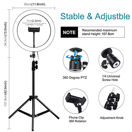 PARIO Ring Light per Tiktok, 30cm Lampada ad Anulare Luce Circolare LED Luce ad Anello Luminoso per Selfie, Makeup, Fotografia, Live Stream, Smartphone, Youtube