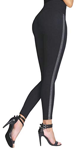 Pariser-Mode Leggings Body Shaping pancia via push up dietro leggings con strisce laterali argentate, modello Leggings con vita alta.