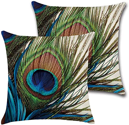 2 Park - Federa per cuscino con piume di pavone, 45,7 x 45,7 cm, in cotone e lino, decorazione per casa, divano, auto, federa quadrata per cuscino per camera da letto esterna morbida