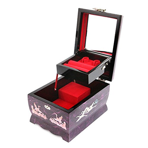 Park SSI Sang Bang - madre di Pearl Music (arirang Melody) hangi, tradizionale Corea Carta un Dressing Specchio Stand (pino albero gru modello) gioielli Box colore viola