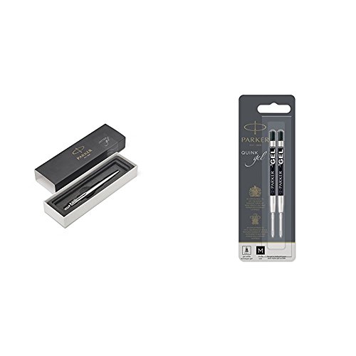 Parker Jotter Penna Gel, Inchiostro Nero, Punta Media, con Dettagli Cromati, Confezione Regalo, Stainless Steel + Ricarica Gel per Penna a Sfera, Punta Media, Confezione da 2 Pezzi, Nero