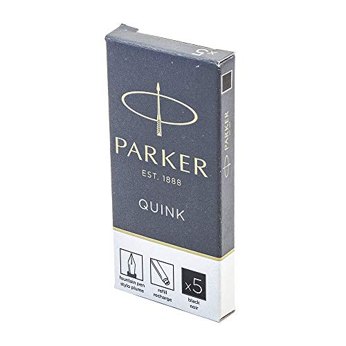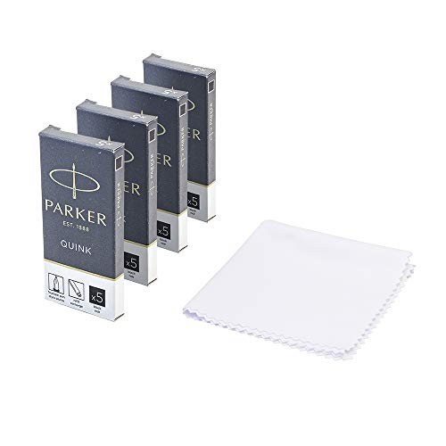 Parker Quink - Cartucce di ricambio per penna stilografica, inchiostro nero, confezione da 20, con panno per la pulizia