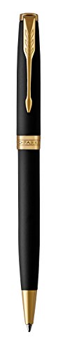 PARKER Sonnet Penna A Sfera, Laccatura Di Colore Nero Opaco Con Finiture In Oro, Pennino Medio Confezione Regalo & Quinkflow Ricarica Per Penna A Sfera, Punta Media, Nero