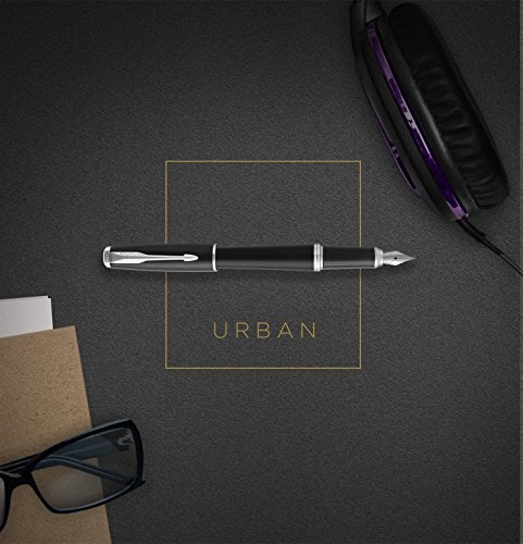 PARKER Urban penna stilografica, Premium Ebony Metal Chiselled (ebano metallizzato cesellato), pennino medio e inchiostro blu (1931612)