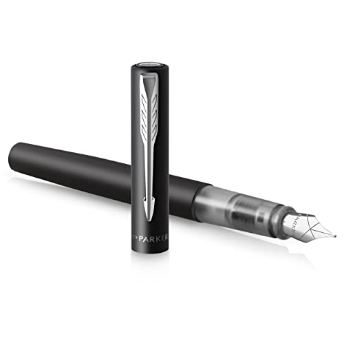 PARKER VECTOR XL - Penna stilografica, colore nero metallizzato su ottone, pennino medio, cartuccia di inchiostro blu, blister