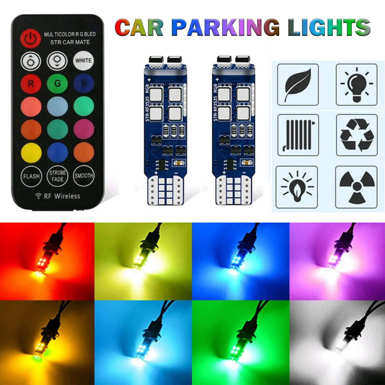 Car Parking Lights Multi-Color RGB 168 194 T10 LED Bulbs W/RF Remote Control Car Clearance Lights Assembly Reading Lights