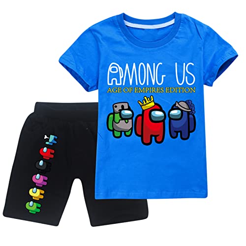Parkourer Maglietta a Maniche Corte Among us Fumetto T-Shirt Set Maglietta Girocollo Cotone Casual Set di T-Shirt a Maniche Corte Estiva Tee Tops Manica Corta + Pantaloni per Bambin 6-14 Anni