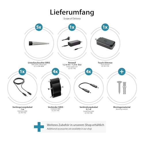 Parlat apparecchio sottopensile LED Siris, touch dimmer, piatto, ogni 50cm, ogni 531lm, bianco caldo, set da 5