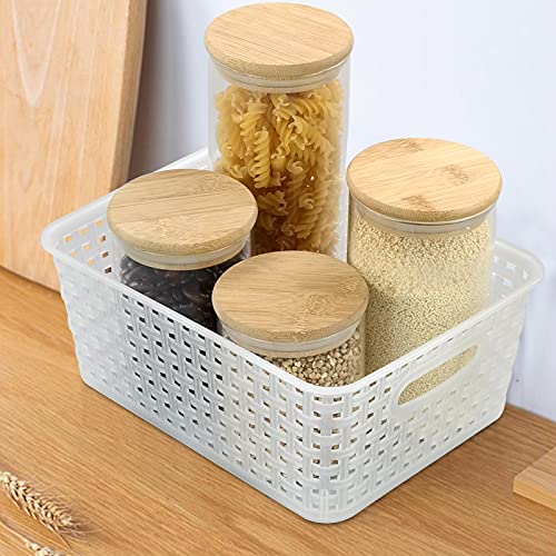 Parlynies Cestino di Plastica, Set di 6 Cestini Portaoggetti, Cesta Plastica Rattan