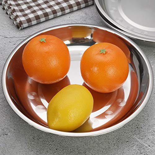 Parlynies Piatto da portata, set di 4 piatti piani, piatto rotondo in acciaio inossidabile