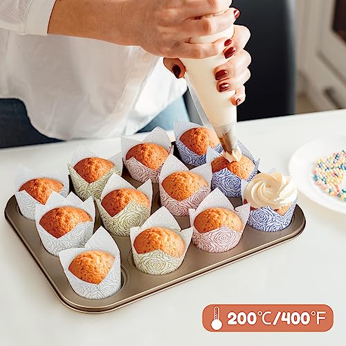 【Elegante e Vivace】 Aggiungi un tocco di eleganza ai tuoi cupcake con i nostri pirottini per cupcake in carta tulipano. Caratterizzati da una bellissima stampa di rose in quattro splendidi colori, questi pirottini faranno sicuramente risaltare i tuoi cupcake.