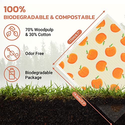 Parmedu Strofinacci Svedesi Confezione da 4, Strofinacci da Cucina Riutilizzabili, Assorbenti e ad Asciugatura Rapida, Strofinacci Ecologici Salviette Detergenti Biodegradabili, Motivo Frutta, TD003