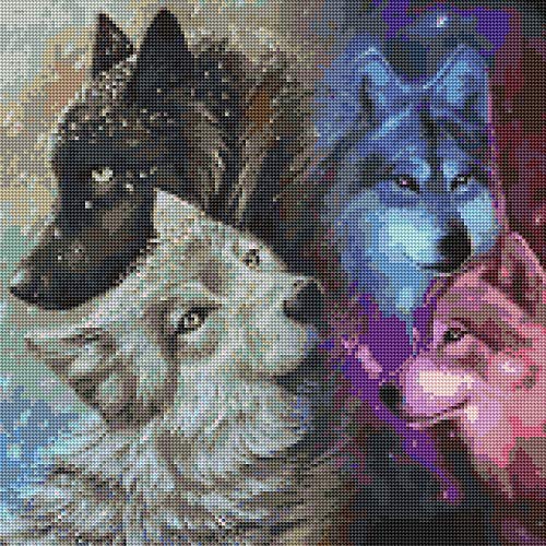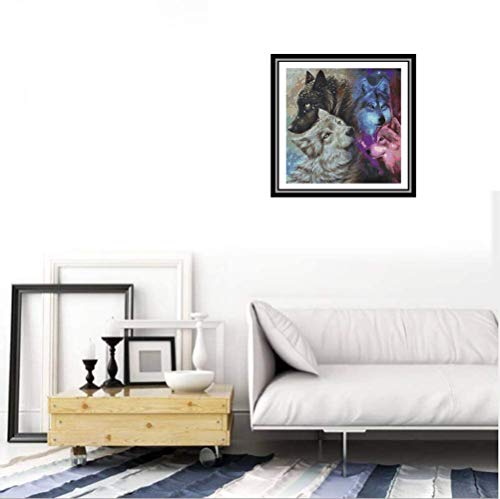 ParNarZar Diamante Pittura 40x40cm 4 Lupi potenti semplici Pietre Rotonde Piccolo Quadro Completo Fai da Te Kit Mosaico per Bambini 6+ principiante Camera da Letto