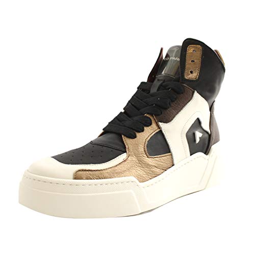 ED PARRISH Scarpe Sneakers Alte, Casual Donna, Pelle Bianca, Nera e Rosa Rame. Fondo in Gomma Bianca con Rialzo da 3cm. N.37
