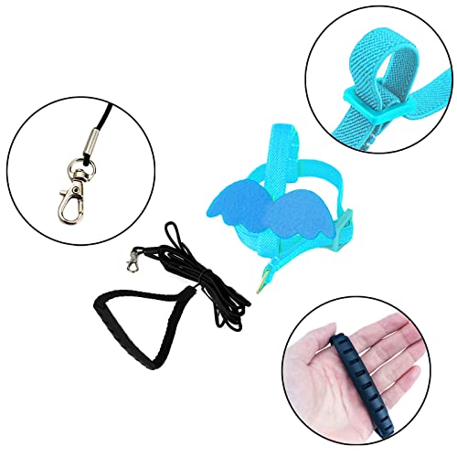 Pet Parrot - Imbracatura per uccelli e guinzaglio, design regolabile, anti-morso, corda in nylon per uccelli, con dolce ala per pappagalli, adatto per Alexandrina, Scarlet, Keck, Mini Ara (azzurro)