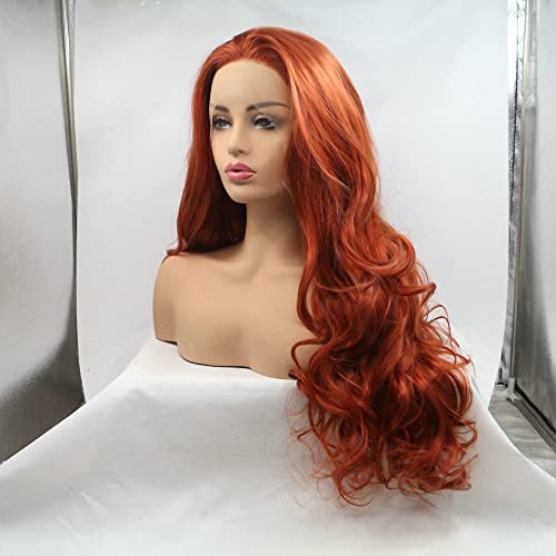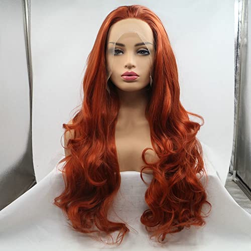 Parrucca arancione scuro parte libera attaccatura dei capelli amichevole signore Cosplay festa di compleanno sintetico pizzo frontale parrucca per donne capelli lunghi ondulati