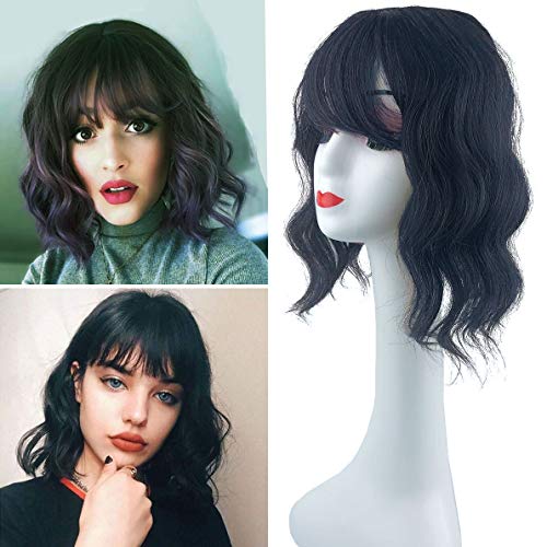 Parrucca con base in seta fatta a mano, con clip ondulata ad acqua, con frangia wispy, capelli umani misti, 35 cm, 1 # nero