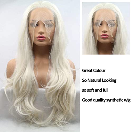 Parrucca con pizzo resistente al calore: parrucca frontale in pizzo bianco biondo è facile da indossare e da togliere, lavabile e gestibile, disponibile con ferro caldo, fibra sintetica resistente al calore, fino a 160 gradi centigradi, può essere acconciata, come mezza coda di cavallo, classico look dritto o 2 panini nella parte superiore, molto carina e di ottima qualità e bella
