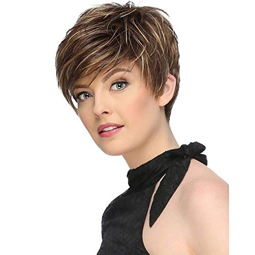 Parrucca capelli sintetici realistici, corti e lisci, colore biondo misto, folta, da donna, ad alta densità, alla moda, per uso quotidiano, feste, Halloween, lunghezza 20 cm