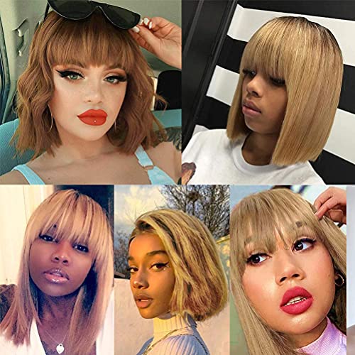 Parrucca 100% capelli umani con frangia Parrucche capelli corti Bob Parrucca capelli umani vergini remy senza cappuccio in pizzo 25.5cm Dal nero al marrone caffè