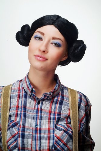 WIG ME UP - Parrucca da Carnevale Nero Crocchia Intrecciata Costume Bavarese Tirolese, 4253 -P103