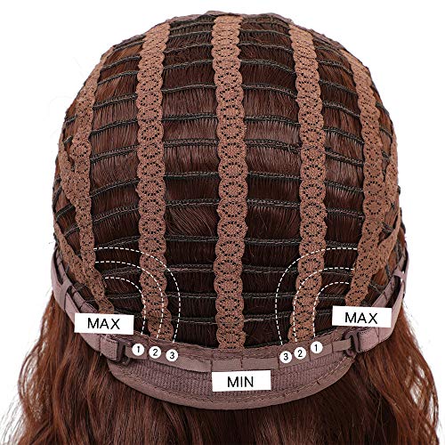 Due cinturini di regolazione possono essere intrecciati in una posizione fissa e possono essere regolati in base a diverse dimensioni della testa.Parrucche economiche e di buona qualità.Cuffia parrucca è morbido e traspirante per evitare di stimolare il cuoio capelluto.