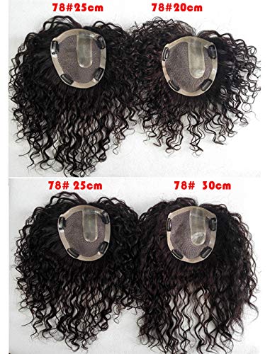 Parrucca con clip per capelli umani ricci, 14 x 16 cm, con corona a sinistra, per donne, colore nero sporco 20,3 cm