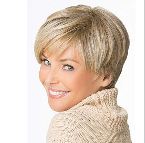 Parrucca corta bionda resistente al calore, capelli sintetici, capelli biondi affascinanti, super naturali, capelli biondi corti con radice nera, parrucca corta da donna