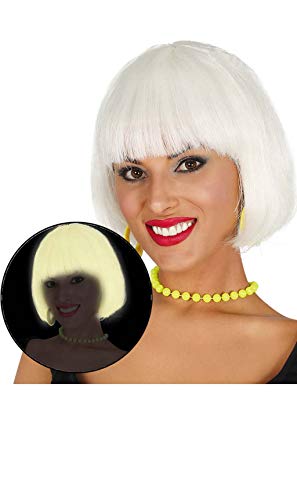 Parrucca caschetto bianco con frangia liscia fluorescente