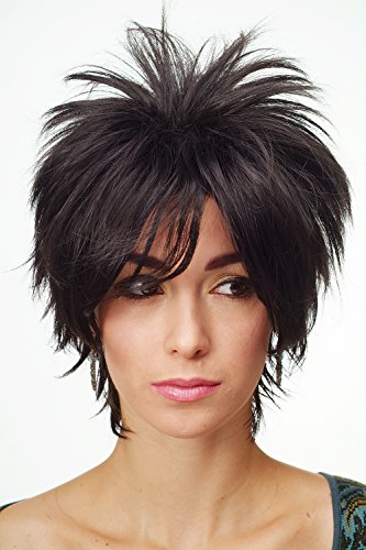 Wig Me Up - Parrucca Da Donna Capelli Corti Cotonati Meches Wave-Punk Anni 80 Nero Blu E144-2