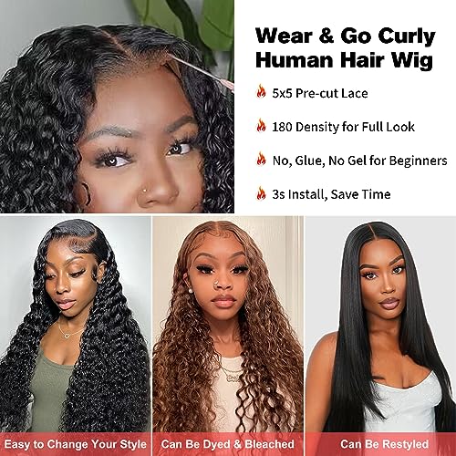 Parrucca Donna Capelli Veri Umani, 5x5 Curly Glueless Wigs Human Hair with Pre-cut Lace, Densità 180% Donna Parrucca Riccia Capelli Veri 24 Pollice (60 cm)