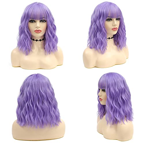 Parrucca donna caschetto viola corta Capelli corta ricci Parrucche sintetiche di alta qualità con frangette Parrucca Fashion bob Wig 14(35cm)