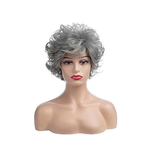 Parrucca Donna Grigia Capelli Corti Ricci Morbidi Capelli sintetici resistenti al calore Parrucche Alternative Tutto Party