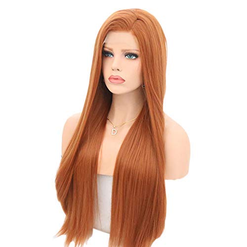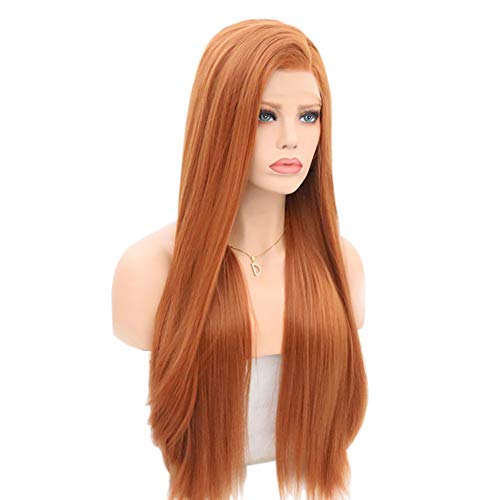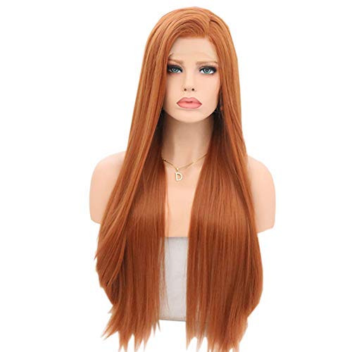 Parrucca da donna lunga, dritta con pizzo frontale, color rame rosso senza colla, legata a mano, parrucca sintetica resistente al calore per uso quotidiano (66 cm, rosso rame #360)
