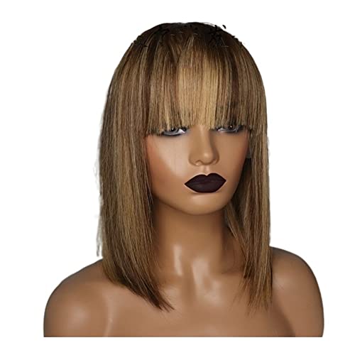 Parrucca for donna Lunghezza spalle Capelli lisci Parrucca caschetto con frangia Capelli veri Biondo misto Parrucche marroni for donne Affascinante for tutti i giorni (Color: Blonde Mix Brown, Size