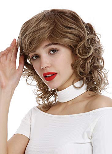 WIG ME UP-ETW-7155AHT-12T16 Parrucca Donna Signora Ricci Altezza spalle Riga Castano chiaro Biondo Mèches