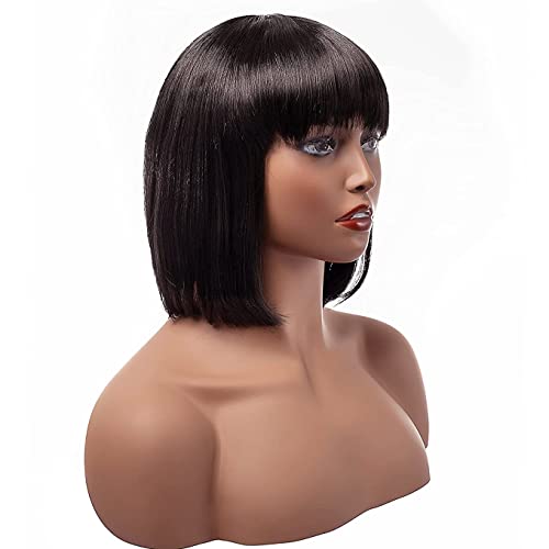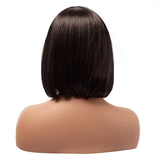 Parrucca da donna, stile a caschetto, con frangia, capelli Marrone Scuro, resistente al calore, capelli sintetici, da donna