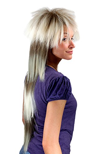 Lunga parrucca cotonata, taglio vokuhila secondo look anni 80- mix di biondo e castano. Lunghezza: circa 80 cm. Codice colore: 10T613.