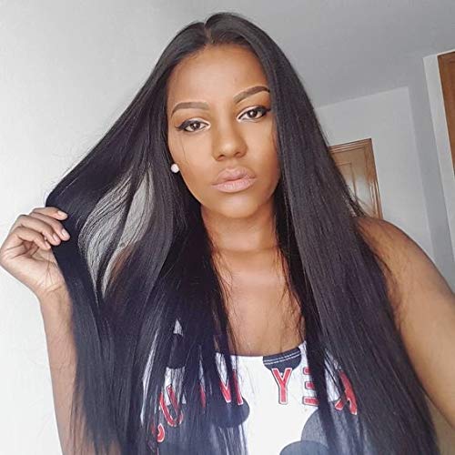 Parrucca di capelli umani vergini 100% non trattati, lisci, con lace-front completo di capelli corti e sottili sulla fronte e lungo il perimetro, per un'attaccatura dei capelli naturale.Annodata a mano, con ampio lace-front (13 x 4 cm), comoda da indossare, senza bisogno di aggiungere altri capelli.