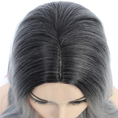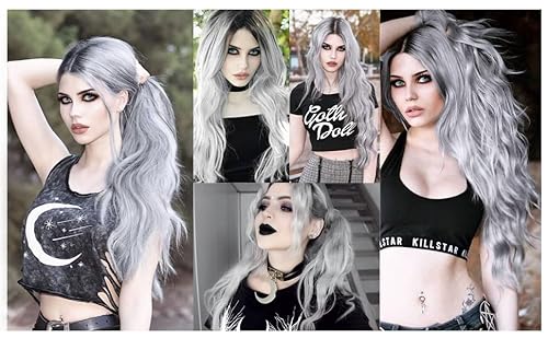 Parrucca lunga grigia per le donne Ombre Parrucche grigio argento Parrucca cosplay ondulata per la parte centrale per l'uso quotidiano delle feste (parrucche d'argento)