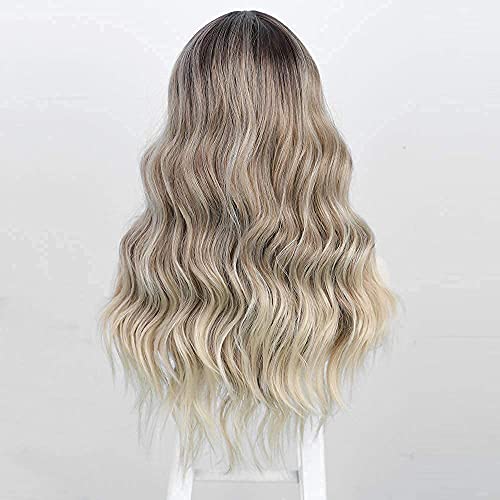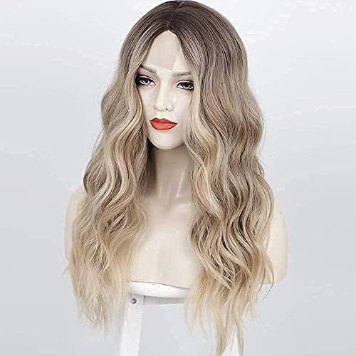 Parrucca lunga ondulata bionda ombre parrucca per donne capelli ricci sintetici parte centrale resistente al calore per uso quotidiano feste